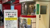 中野サンモールアーケードにある、ストックというお店が閉店しました。柱には閉店の挨拶が貼られており、その下には不動産についてのお知らせもあります。シャッターは4分の1ほど開いていて、がらんとした中が少しだけ窺えました。
